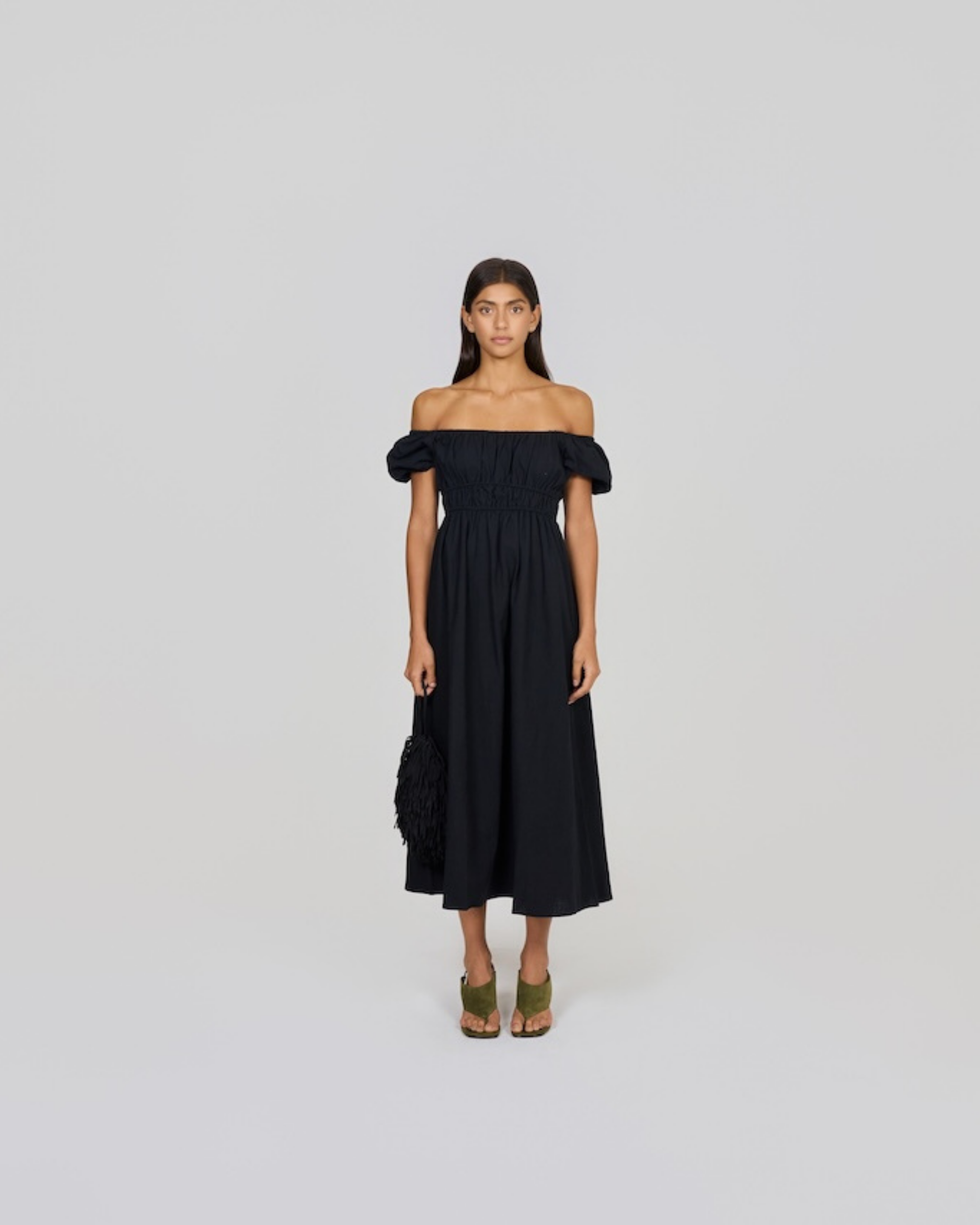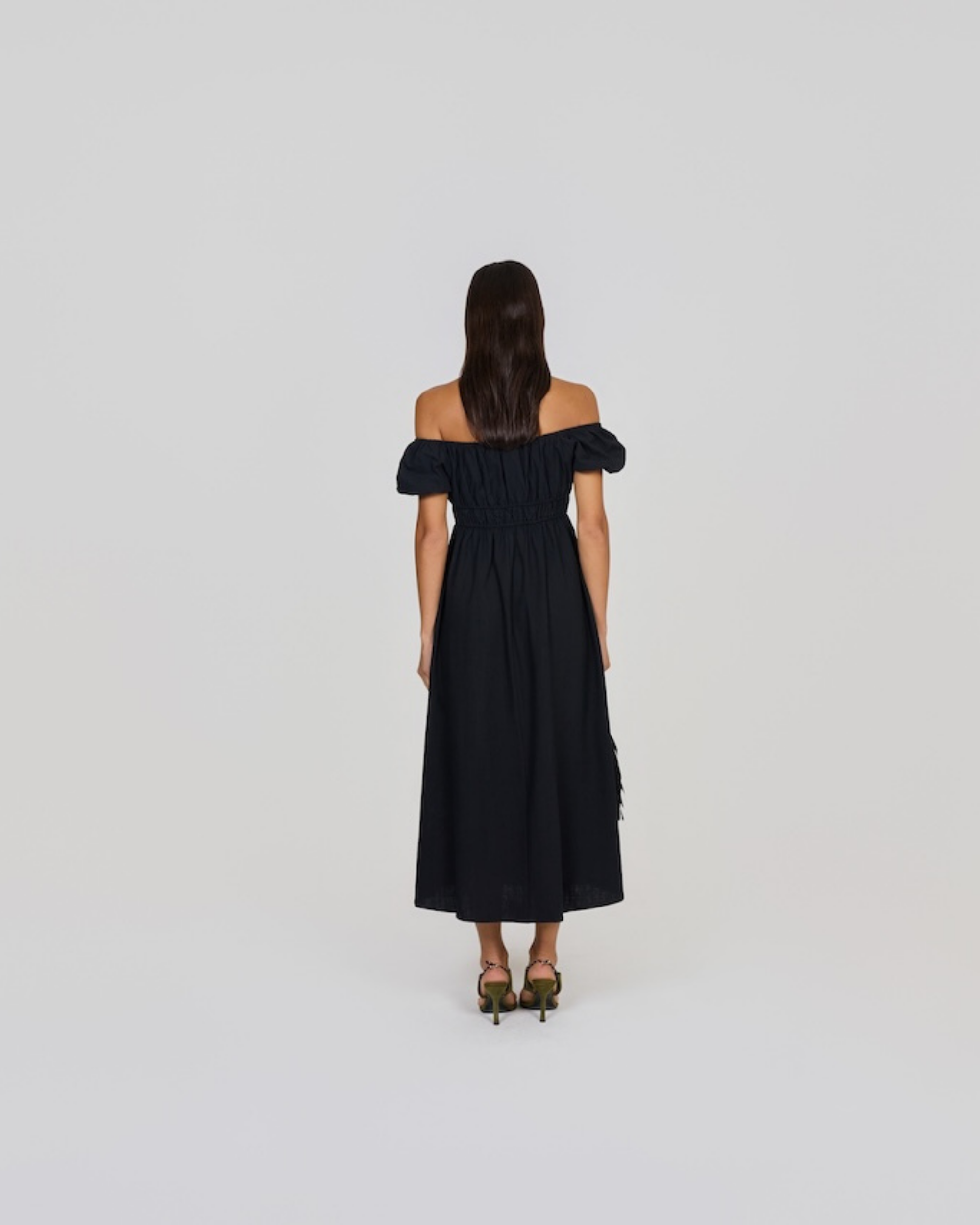 The Rosie Maxi Dress in Black, thick, soft linen ready to be worn all season long.